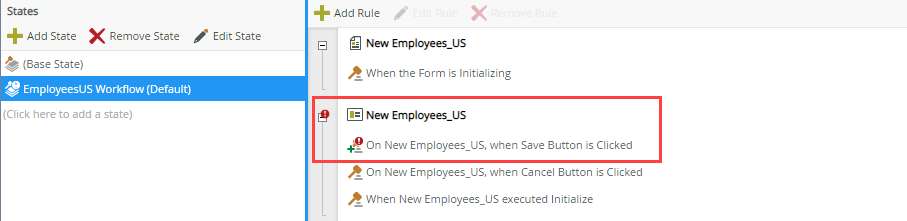 3. Select New Employees_US > On New Emplyoees_US, when Save Button is Clicked