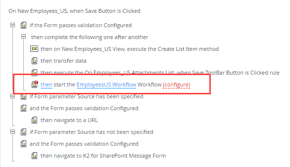 4. Locate the then start the ... Workflow action and click configure