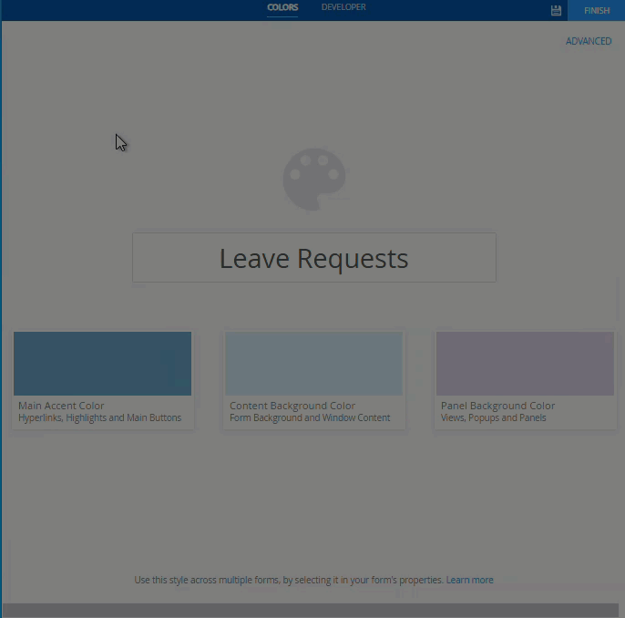 - Once you are done customizing your three main colors, click Finish to save the style profile.