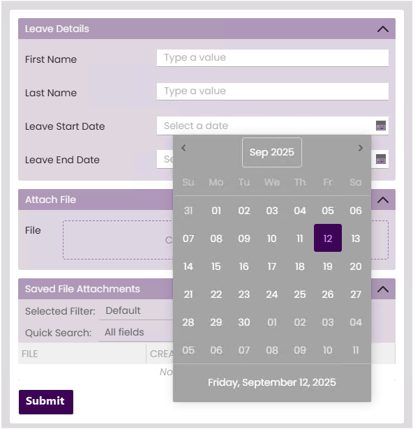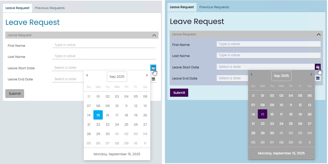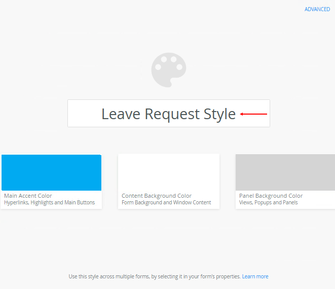 - From the Designer, select the Leave Request Form form and click Run. Note how the new style is applied to your form.