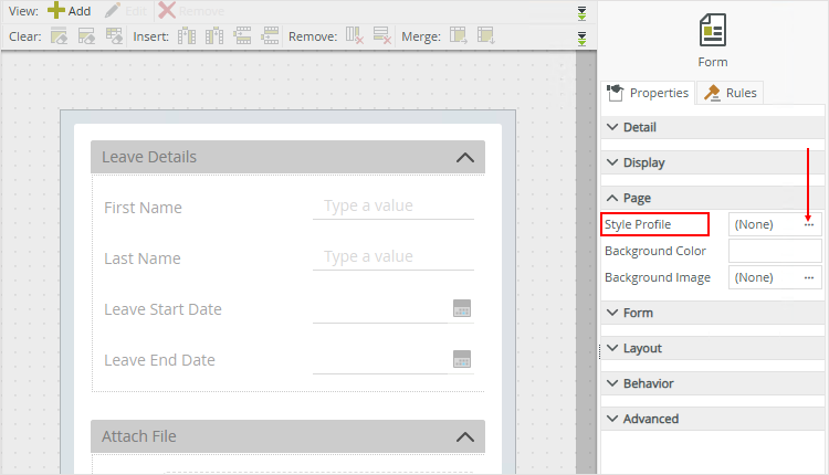 This article illustrates how to create a basic style profile. Style profiles allow you to add color to your forms. Use the Style Profile Designer to customize the color palette of items such as hyperlinks, buttons, and the background color of views and forms.