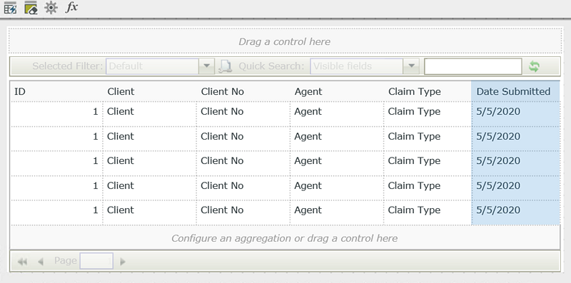 - Configure the Subject field to show the client and client number. Expand the Context Browser and drag the Client and Client No properties from the Claims Details references into the field.