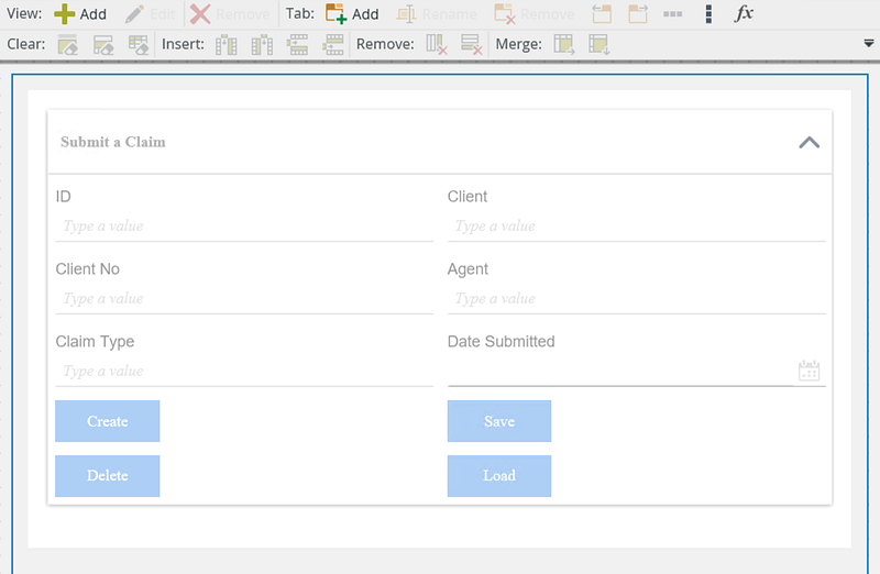 - Open the Claims Detail Form and enter values for the claim. Click Save.