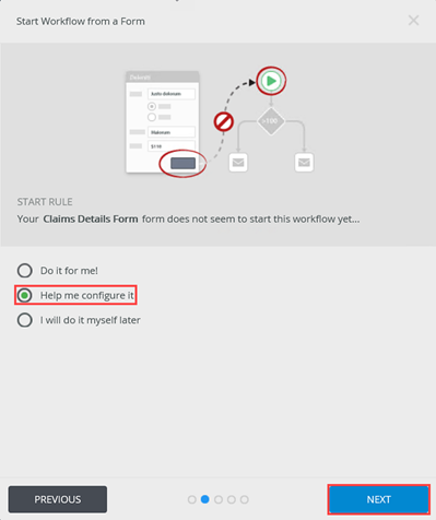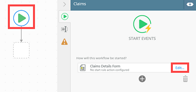 - In this step, you design a workflow and configure the Start step to start the workflow when you submit the Claims Details Form.