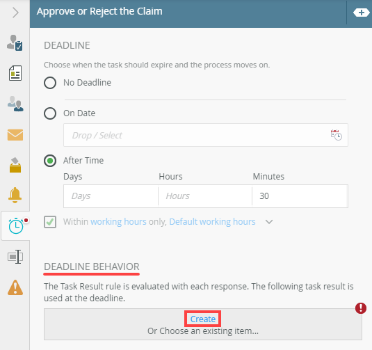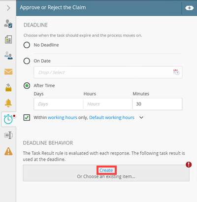 - Click Create in the Deadline Behavior section to create a task result when the task expires.