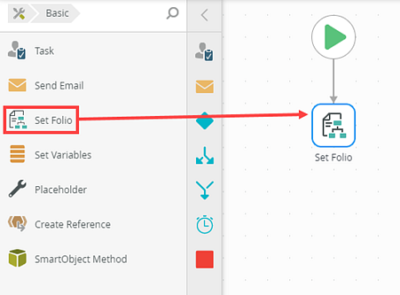- Select the Set Folio step from the Tool Box and add it to the canvas.