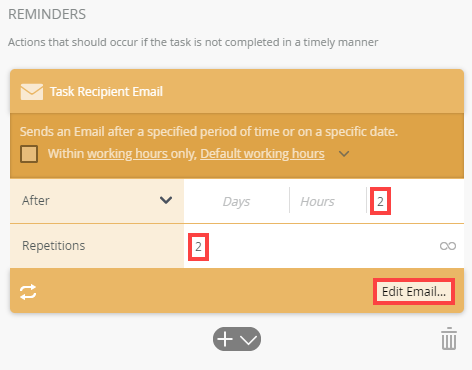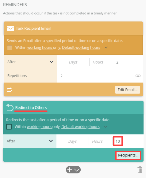 Using an Task Email Reminder, Task Redirect and Deadline to remind recipients to action a task, redirect a task to another recipient when a specified duration has expired