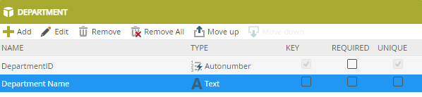 - Add a Department Name property, as shown in the following image: