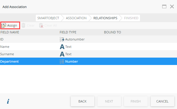 - On the Relationships page select the Department property and click Assign.