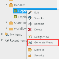 - On the Department List view page click Generate a Form.