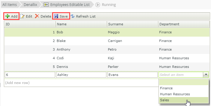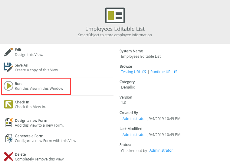 - On the Employees Editable List page click Run.