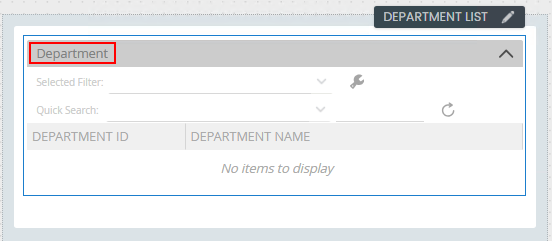 - Navigate to and select the Department SmartObject.