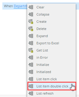 - Click select method and select List item double click. This configures the form to perform an action when an item on the list view is double clicked.