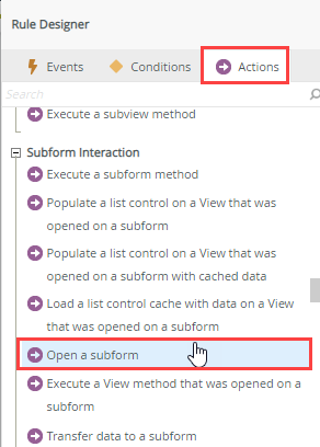 - Navigate to the Subform Interaction node and click Open a subform.