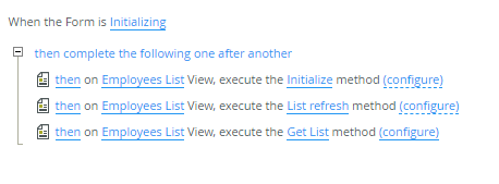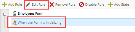 - Select the When the Form is Initializing rule in the Employees Form node and click Edit Rule.