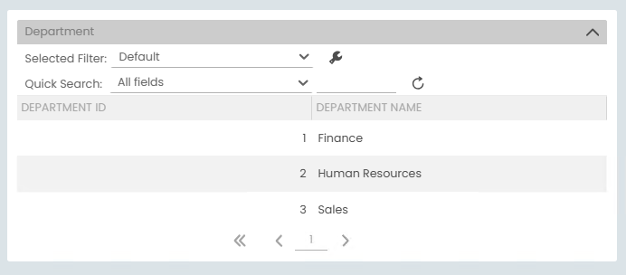 - The form loads the list of departments. Double click the Finance department.