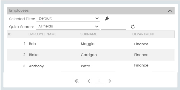 - The Employees Form loads, and displays the list of employees in the Finance department.