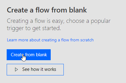 - In Microsoft Power Automate, click Create from blank.