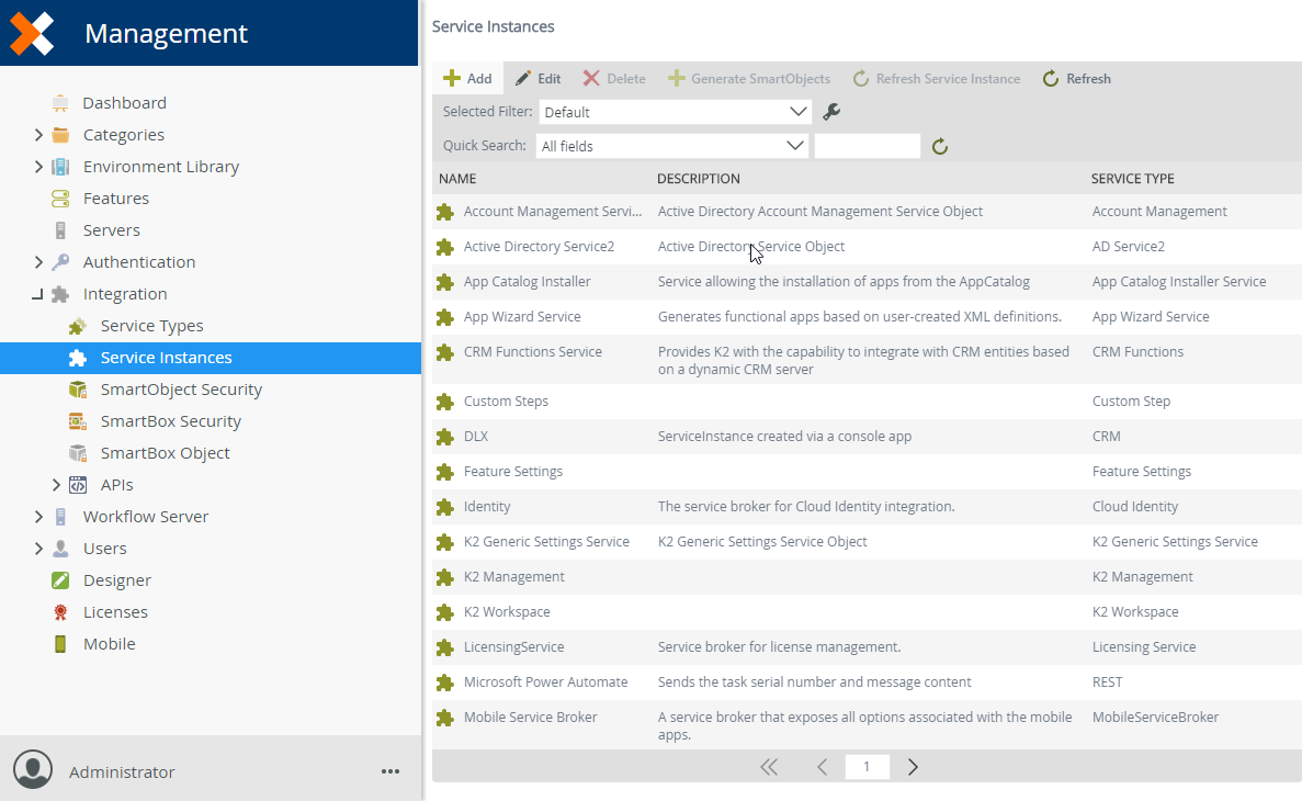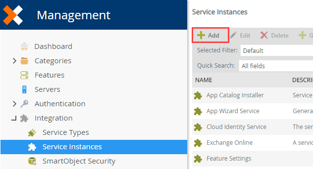 - In Management Site, go to Integration > Service Instances.