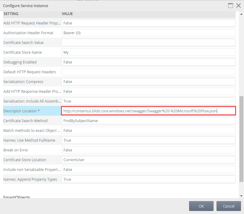 Create your REST service instance that defines the data connection between your environment and Microsoft Power Automate using a SmartObject. The objects and methods defined in your JSON file are used to send information from your workflow to your flow.
