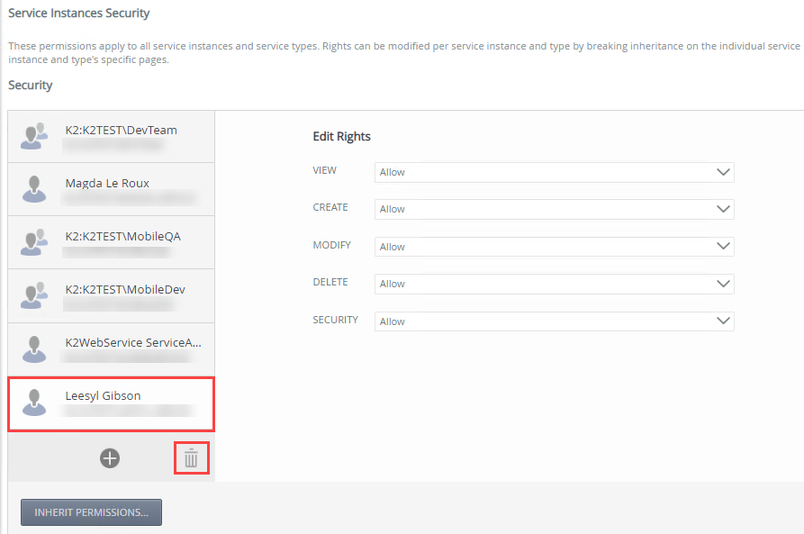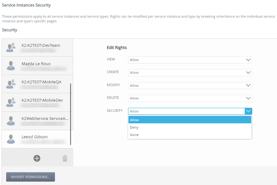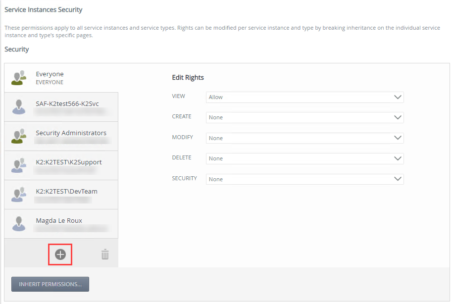 - Service Instances Security - Serves as the root level from where rights are inherited and is useful where rights must apply across all service types and service instances.