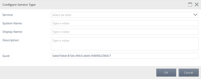 - The Configure Service Type page opens. Edit the values as necessary, using the table in Registering a service type as a guide.