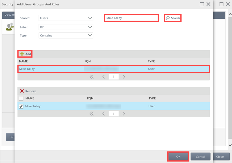 - On the Add Users, Groups, And Roles page search and add a user or group. Click OK.