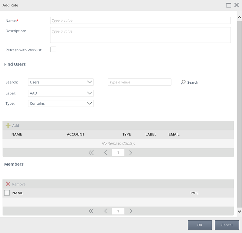 When searching a role the value you enter could either be the full value of the field or a partial match value. Using a partial value will return all items containing the value in the name of the field. For example, entering Dep will return all roles containing the letters dep such as Department A, Department B, Finance Department etc. For more information see Search and filter List views.