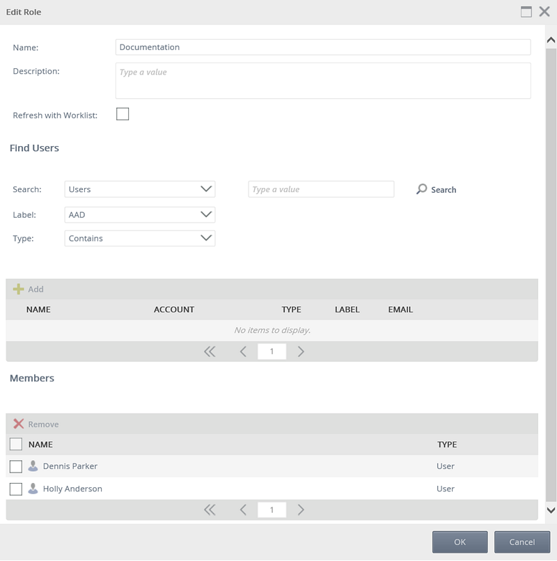 As an administrator, you define roles using Management and they are stored on your server. You can modify the role membership without needing to modify the design of workflows or authorization rules that use those roles. Roles can contain one or more users and groups, from multiple user managers.