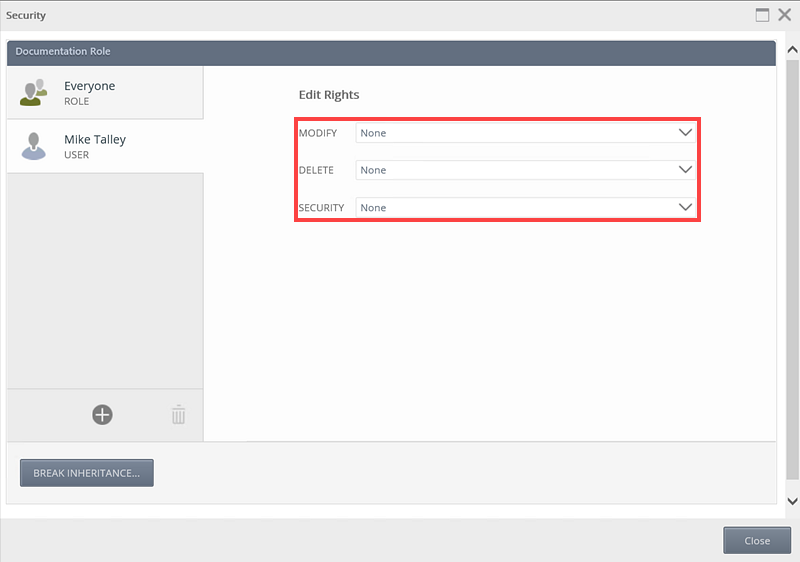 | Security | As the creator of roles you can assign security rights to roles, which allows others the manage the object's security, including assigning Modify, Delete and Security rights. |