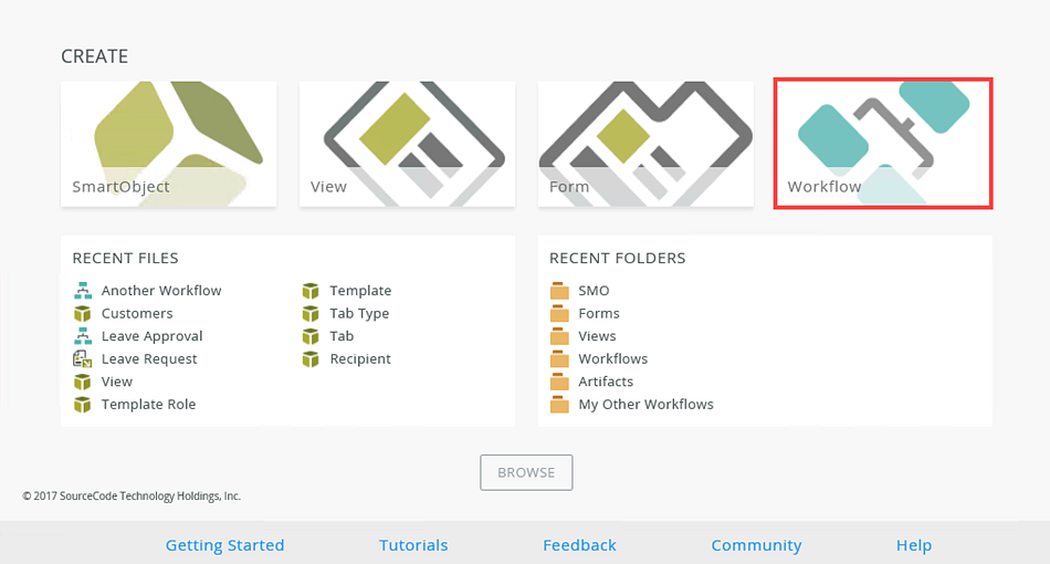 The Workflow Designer is a visual design tool that enables you to create simple to advanced workflows. By dragging and dropping steps to add user tasks and server events, and configuring those steps using static and dynamic values, you build your business logic into the workflow. The logic you design into the steps and flow of the various paths can contain rules, SmartObject data, forms, variables, inline functions, and other values based on the context of the workflow.