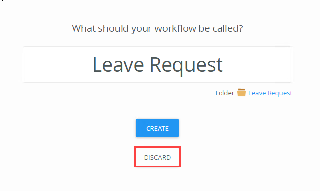 - Click the Discard button to cancel creating the workflow. The workflow is not created and you are returned to the Designer page.