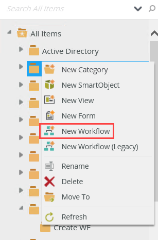 - To create a workflow directly from a category, right click the category and select New Workflow from the menu.