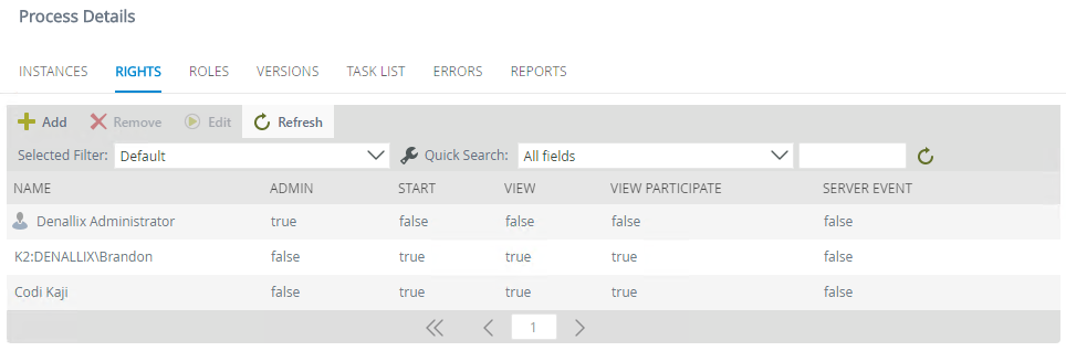| Admin | Required to view, add, and edit the Process Rights for a workflow and administer active workflow instances. |