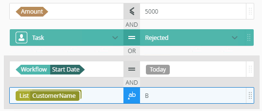 - You can move conditions up or down. Below is an example on moving and grouping conditions.