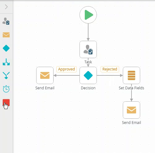 - To add an End step to a workflow, drag into position onto the canvas and link it to a current step on the workflow by dragging a line to the End step.