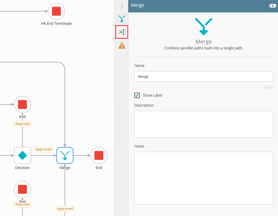 - When using complex workflow structures, make use of the Merge step to combine non-parallel path to a single path. This reduces visual complexity on the canvas. An example of this is a workflow which has multiple levels of approval tasks but only one shared Approved step. Use the Merge step to bring all the approval paths into a single path that connects to the Approval step.