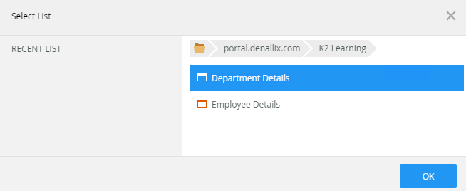 - Select the site and list and click OK.