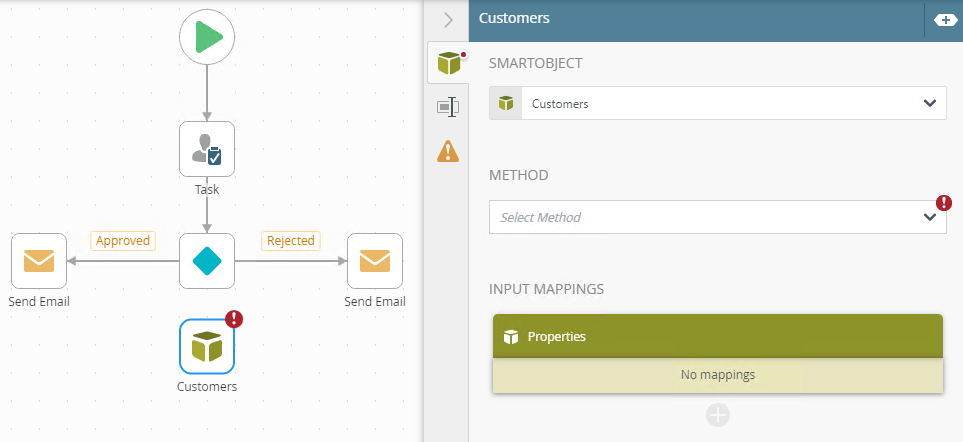 - With the SmartObject step selected click on the Properties tab.