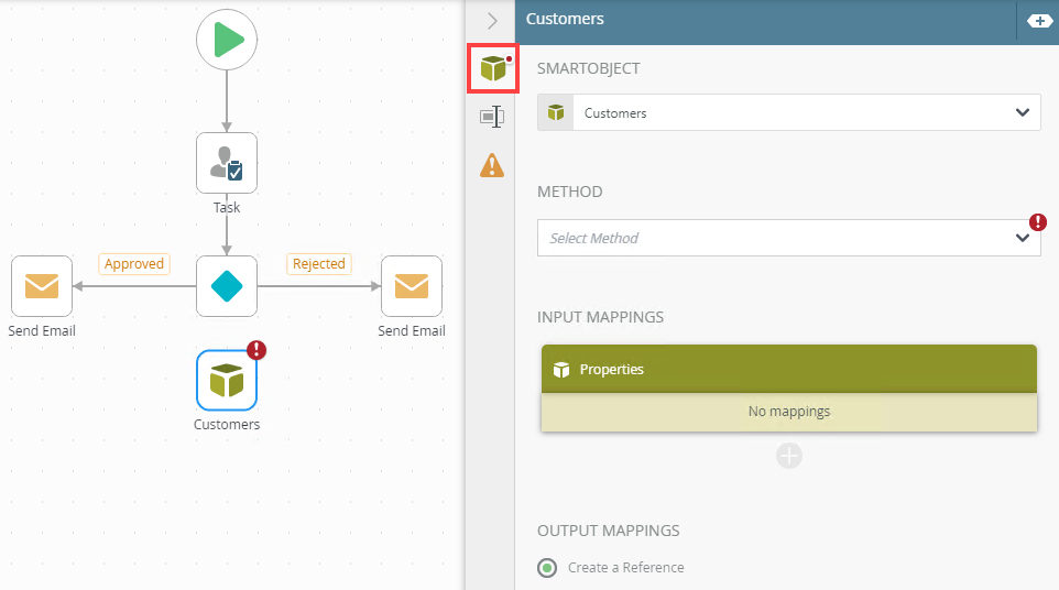 Use this feature to create a reference to the SmartObject to use from other steps within the workflow. You can create a reference to a SmartObject using the Create Reference step, but it's recommended to rather create the reference using this option. |