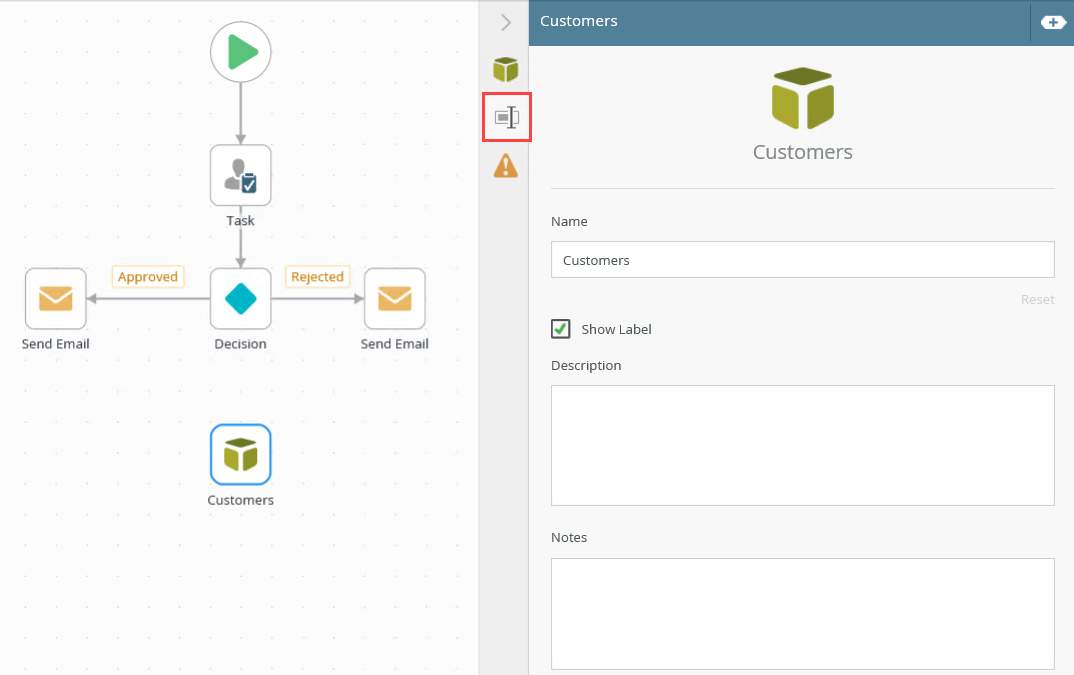 | Title / Name | By default, each step on the canvas has a step title. You can change this title to suit your workflow logic and show it on the canvas by checking the Show Label box. | Enter a value into the Title/Name field. |