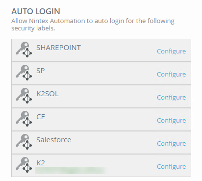 If your organization uses security labels to manage logins or Single Sign-On (SSO) logins to other systems, you can use the Auto Login section to manage your cached credentials.