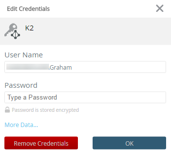 Enter your User Name and Password and click OK. If there is more information required for the selected login type (not common but could be required for some types of security labels), click More Data... to add that information; check with your administrator if you need to enter additional information.