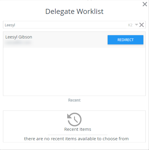 Search for the person who will receive your tasks while you're away, select them, and then click Redirect.