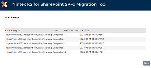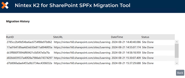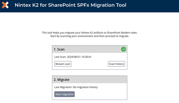 If you have existing SharePoint Online solutions using the legacy Nintex K2 for SharePoint app, you must move your existing solutions to Nintex Automation for SharePoint before the deadline provided by Microsoft. From Nintex Automation (5.8) onwards, you can use the Nintex K2 for SharePoint SPFx Migration Tool to do this. The migration tool connects to the K2 database, create an inventory of Add-In based artifacts and perform the changes for you.