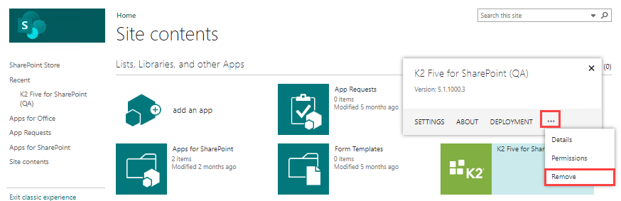 Deleting artifacts and uninstalling the app from your environment removes them from SharePoint. You want to be sure that all SmartObjects, views, forms, and service instances are completely removed from the environment, and that there are no orphaned artifacts.