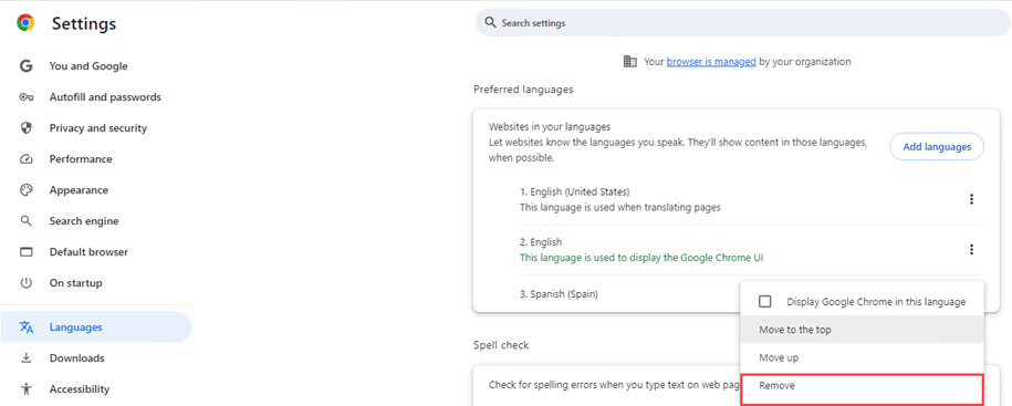 Follow the steps below to remove a language from the Selected Languages list.