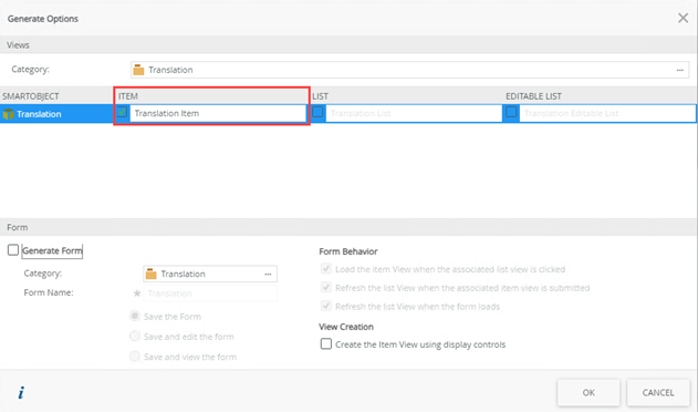 Generate an Item view from this SmartObject.