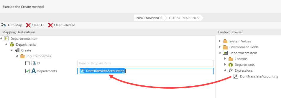 When a form rule contains a static value in a SmartObject input property as shown below, the value is translated using the browser's language when executing the SmartObject at runtime.
