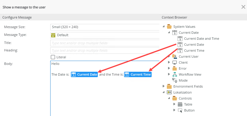 You can create translation keys for properties that are mapped from the Context Browser in the Designer. In the example below we use a rule with date values.